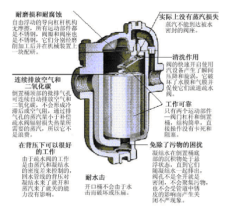 倒置桶式蒸汽疏水閥產(chǎn)品結(jié)構(gòu)特點(diǎn):