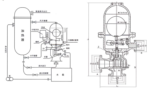 T47H-16C/Q浮球式蒸汽疏水調節閥用于除氧汽水箱水位的調節,有效控制加熱器中的水量多少的必須設備。適用于較大背壓力且不會泄漏蒸汽,排出的凝結水是接近蒸汽壓力的飽和水,故有利于提高本閥門的設備熱效率和二次蒸汽利用的節能特點。