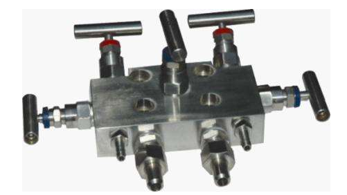 五閥組由高低壓和平衡閥二個排泄閥組成,五個閥組件的結(jié)構(gòu)完全相同。閥的通或斷是由閥桿組件帶動閥瓣移動而定的。它跟三閥組相同作用是:將差壓變送器正、負測量室,使引壓點與測量室接通或斷開。