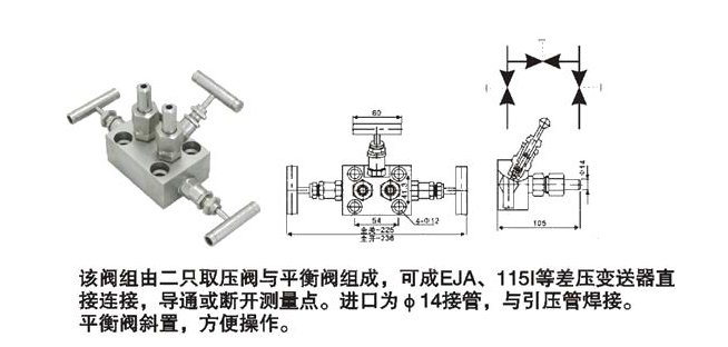 SF-2B一體式三閥組另有美標結構生產其型號有:M364W、QFF3、WF5H、1171、1161、1181、1151、M604W,是儀表測量管路系統中重要組成部分,具有安裝拆卸方便、連接緊固、有利于防火、防爆和耐壓能力高、密封性能良好等優點,是電站、煉油、化工裝置和儀表測量管路中的一種先進連接方式的閥門。SF-2B三閥組適用于1151系列電容差壓變送器。其作用是從引壓點將信號引入1151系列電容差壓變送器正、負測量室,使引壓點與測量室接通或斷開,是1151電容變送器不可缺少的配件。