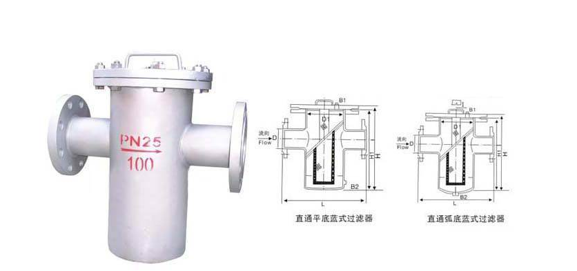 直通藍式過濾器適用于各種工業生產部門中液體物料的過濾,主要有石油、化工生產中弱腐蝕性物料,如:水、氨、油晶和烴類;化工生產中的腐蝕性物料,如:燒堿、純堿、脂肪酸等;制冷工藝生產中的低溫物料,如;甲烷、液氫、液氧等;輕工、食品、醫藥生產中具有衛生要求的物料;如各種飲料、乳制品、酒類、糖類和醫藥等。