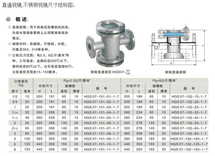 直通視鏡,不銹鋼視鏡主要技術(shù)參數(shù):