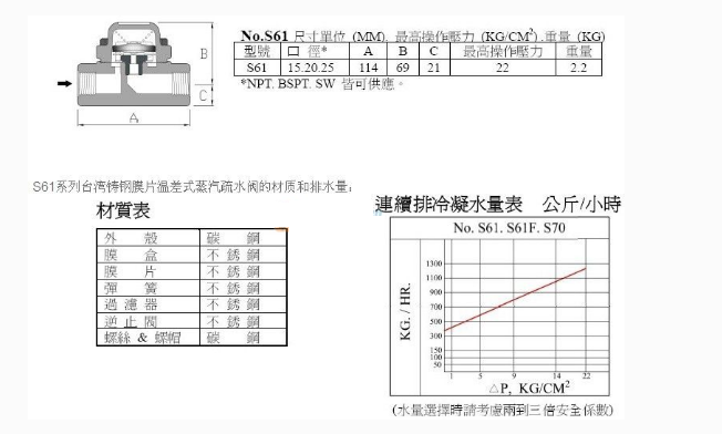 18)臺灣DSC鑄鋼膜片溫差式蒸汽疏水閥S61,S61F系列