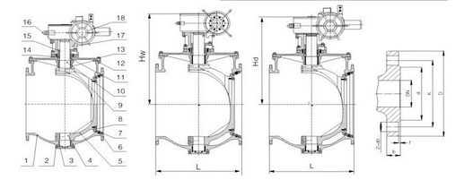 DYQ940F/H/Y電動側裝式偏心半球閥結構圖: