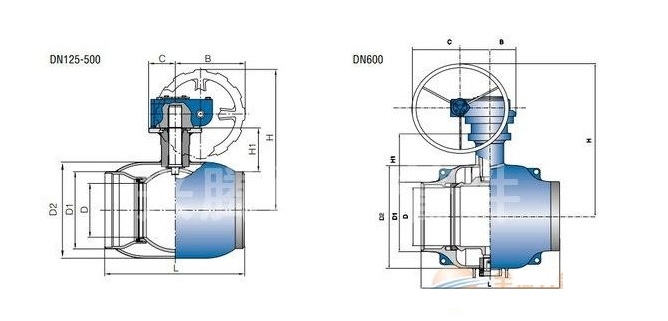 3、連接尺寸:ANSI B16.5 大于24" 采用MSS-SP44或API605 焊接閥門(mén)焊口按ANSI B16.25(用戶(hù)需提供配管尺寸)