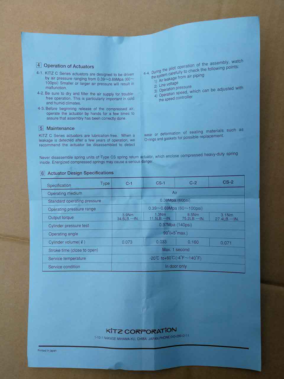 產品名稱:CS-UTE/C-UTE KITZ氣動不銹鋼球閥