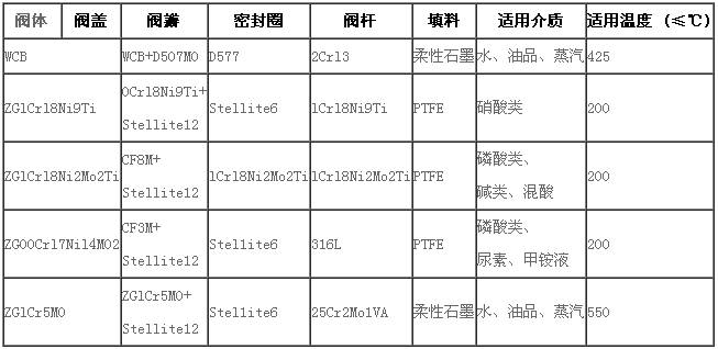 5、閥體材料品種齊全,填料、墊片可根據實際工況或用戶要求合理選配,能適用于各種壓力、溫度及介質工況。